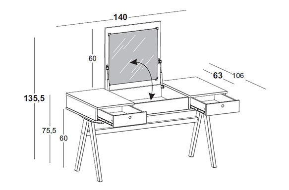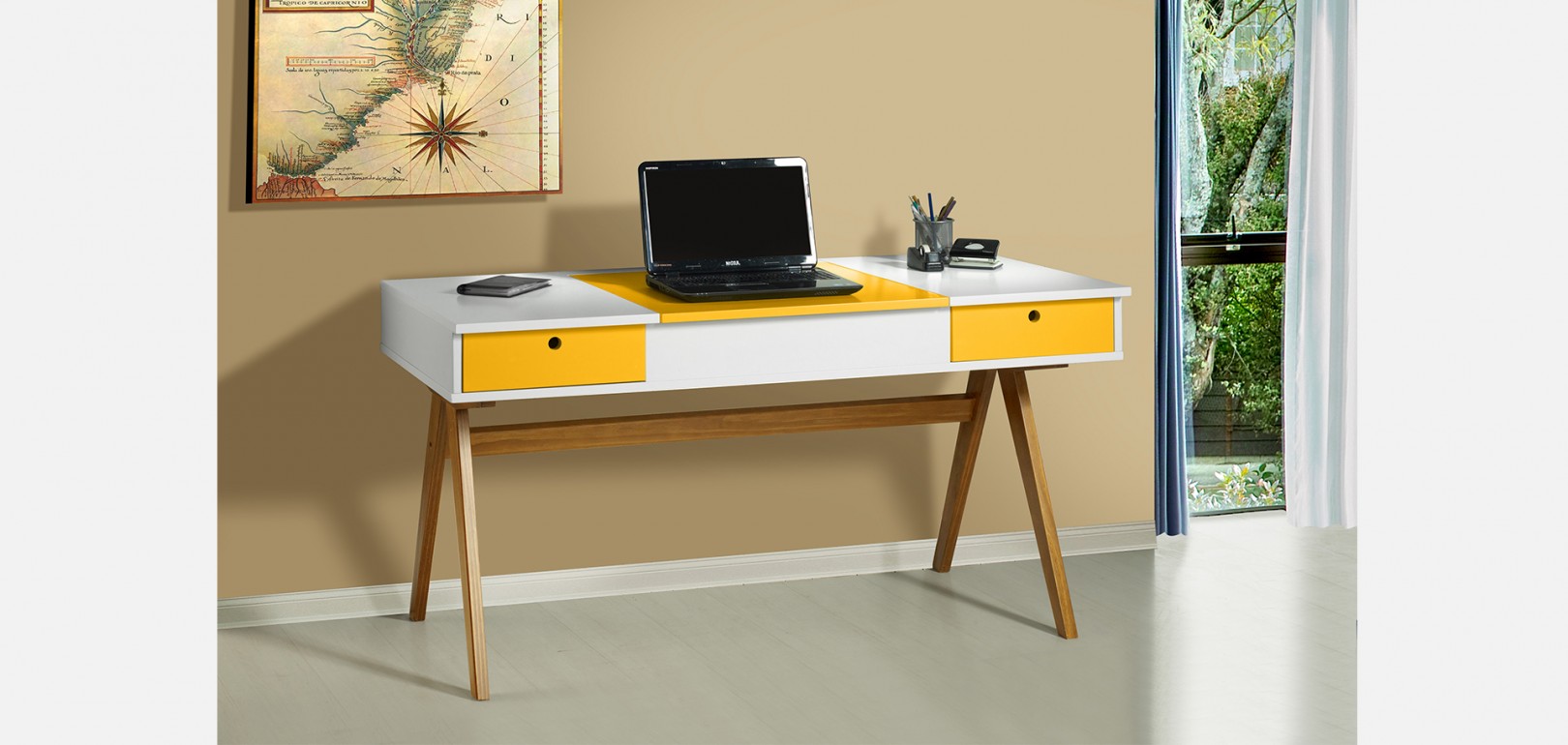 Parte superior em MDF com acabamento em laca fosca.